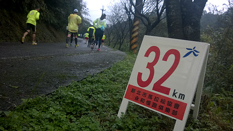 照慣例要拍32K里程牌,象徵本場馬拉松比賽正式展開!