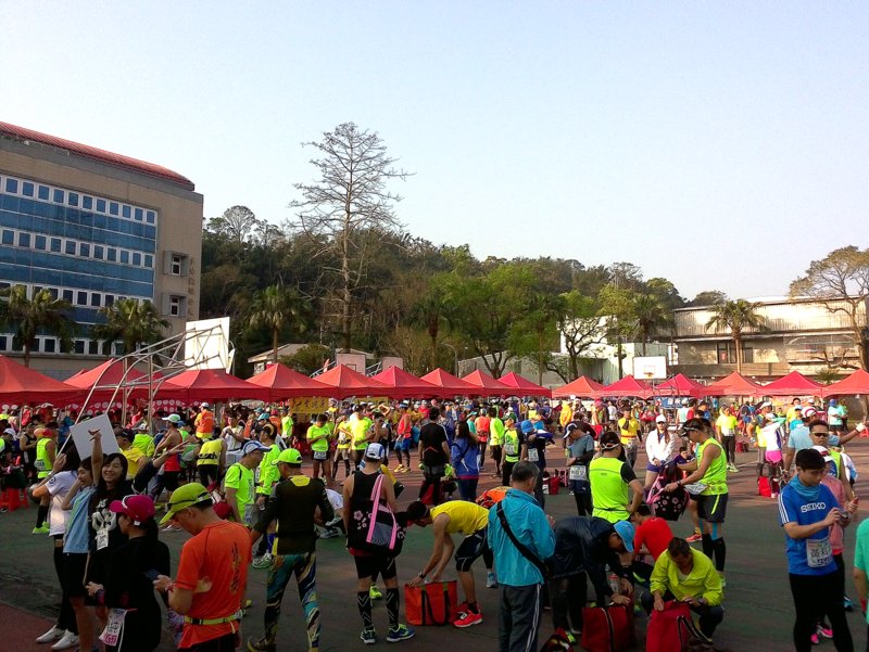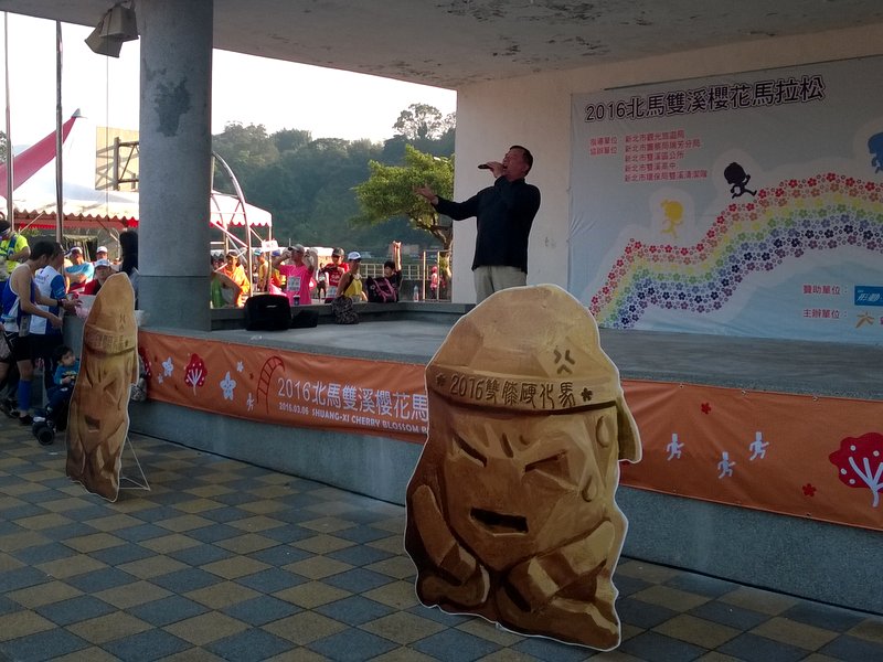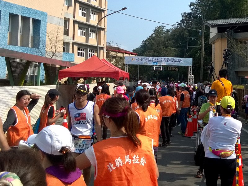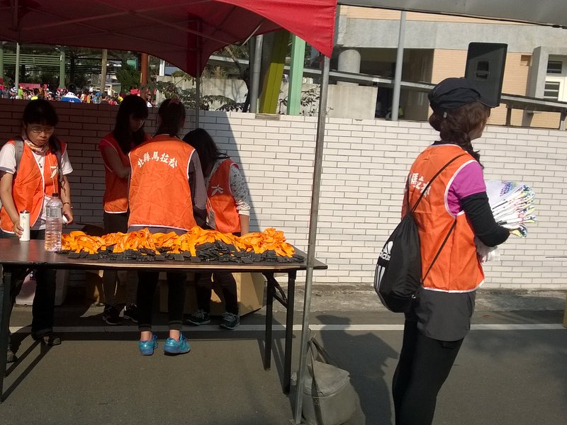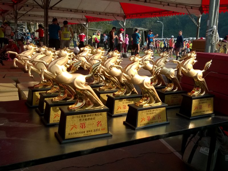 司令台旁獎典組帳篷,閃閃發亮的金馬獎盃真漂亮,自知腿弱體衰,此生與凸台算是無緣了,跑健康就好,跑健康就好。今年意外櫻花馬有項好傳統--捐衣活動,家裡一堆沒穿過的路跑排汗衫有了好歸宿。