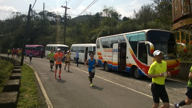 前半馬花了三小時,差不多在中段班。回程收容車已在路旁待命,站在車旁招呼的志工很壞心:「快上車哦,天氣那麼熱,上車就可以休息吹冷氣囉!」哈。而回程只要聽到後方傳來小巴士引擎聲,就知道有一台「坐好坐滿」的冷氣回容車回去了。 XD