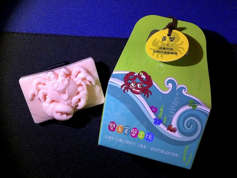 領完寄物遇上雙溪國小的小朋友:「叔叔,要買我們的手工皂嗎?」,明知這是行為的藝術裡所說的「擬人化」戰術,還是很沒抵抗力地拿退晶片的100元換了手工皂,回家一看,居然是螃蟹造型,蠻可愛的。