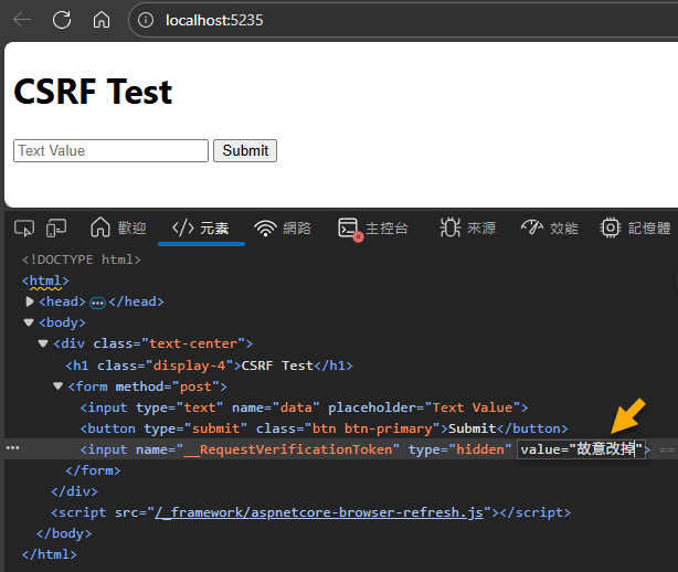 要怎麼驗證 ASP.NET Core 真的有檢查防偽權杖?有兩種簡單做法,用瀏覽器 F12 工具就能操作。