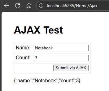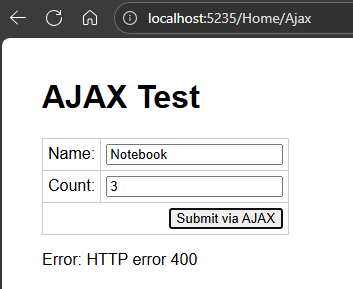 至於 AJAX 呼叫,使用以下範例展示。由於 .cshtml 沒使用 <form method="post">,不會自動加上防偽權杖隱藏欄,故要自己加上 @Html.AntiForgeryToken(),使用 .fetch() 傳送 POST 請求時,用 document.querySelector('input[name="__RequestVerificationToken"]')?.value 取值,設成 RequestVerificationToken Header 就 OK 了。