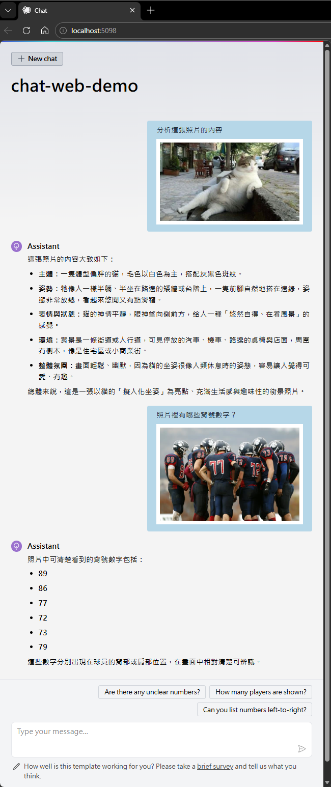 原始 AIChatWeb 限定 RAG 查詢,輸入文字聊天功能很 OK,但沒有上傳圖檔功能,故本次的修改重點為: