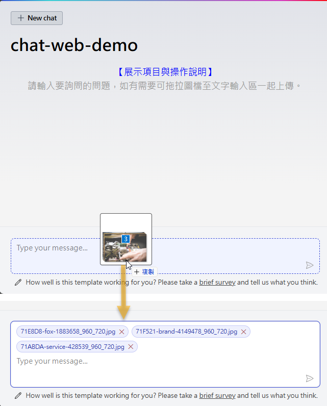 - 修改 ChatInput.razor,加入拖拉上傳檔案功能(透過 JS 分塊處理大型檔案)
