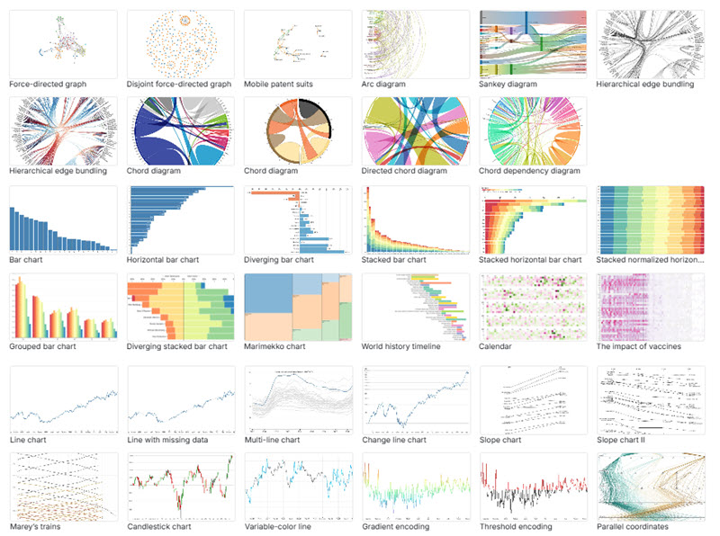 而除了提供各式現成圖表範例,D3.js 的 API 能充分支持開發特規圖表或加入高度客製的互動操作,換句話說,你的 HTML/CSS/JavaScript 技能水準決定 D3.js 的能力極限。