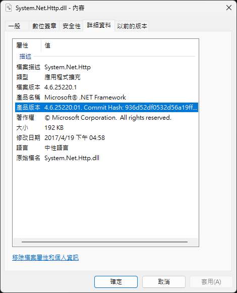 - AssemblyInformationalVersion 產品資訊,可加上自訂文字。