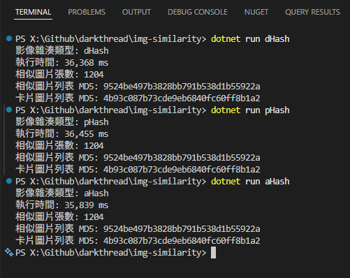 Console.WriteLine("相似圖片列表 MD5: " + computeMd5(similarPics.Select(r => r.fileName)));