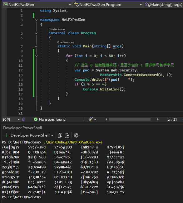 開發系統時,偶爾需要隨機產生符合複雜度要求(包含大小寫英數字加符號... 等)密碼的需求,例如:新帳號初始密碼、重設密碼... 等,這篇來聊聊這類程式寫法。
