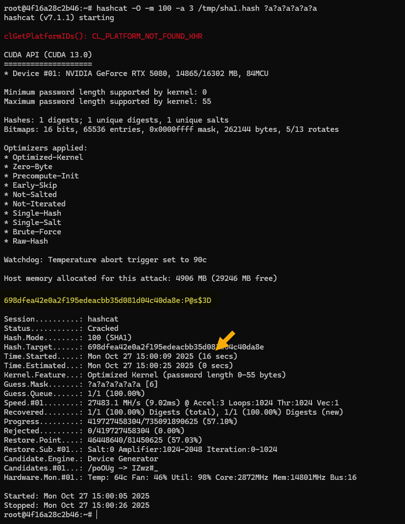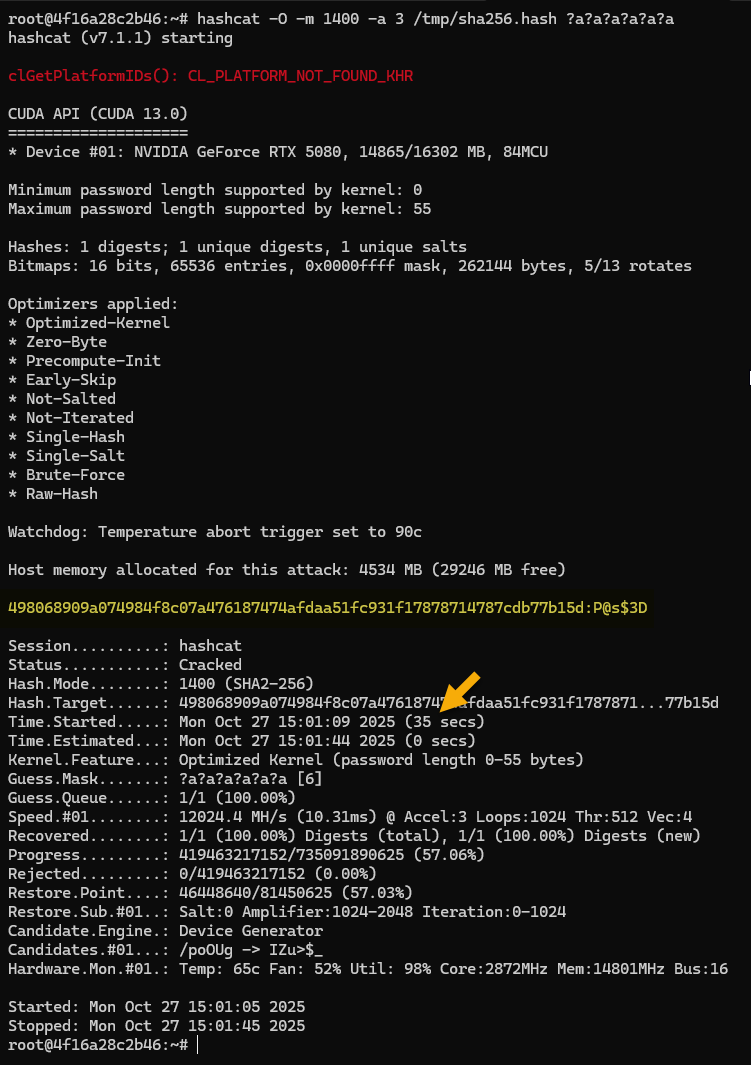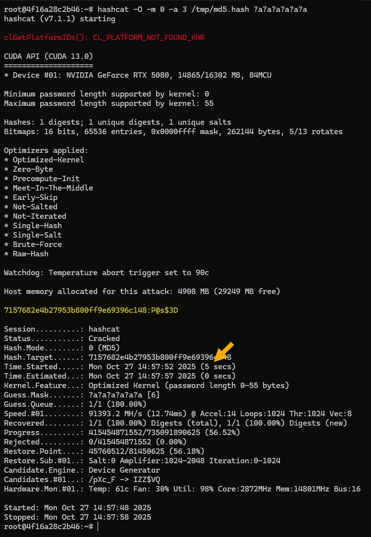 嚴格來說雜湊暴力破解本質是個數學問題,按計算機便知道結果,並不需要真的用實驗驗證,但腦海一直有個聲音跟我說:「這個實驗你必須做,人生才不會有遺憾!」,好哦,既然有緣摸到 5080,就來試試唄。