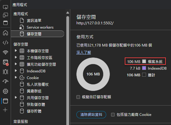 上回提到在瀏覽器裡跑的 SQL 引擎 - SQLite WASM 帶出 DB 檔案該存哪裡的議題,我後來用序列化存進 localStroage 做了簡單示範,但 localStorage 5 ~ 10 MB 的容量上限明顯限制了應用場景。