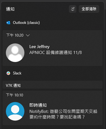 許多程式會發送快顯訊息,像是 Outlook、Slack... 若我希望在收到信件或訊息時觸發特定動作,除了設定針對不同應用程式寫程式,若是只需標題文字的簡單需求,統一監測快顯通知則是另一種簡便的低成本做法。老樣子,武器必須要有,要不要用再說,Let's go!