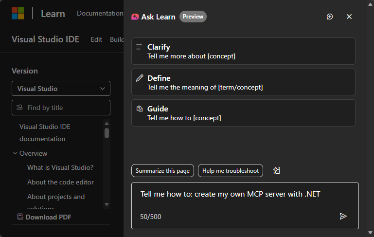 每個 AI 工具都有其最佳場景,Ask Learn 最適合的情境應是:查到 MS Learn 文章,心中仍有疑惑或想再了解深一點,又或者想參考程式範例,而且希望得到最官方版本的回答,那麼 Ask Learn 是最好選擇。
