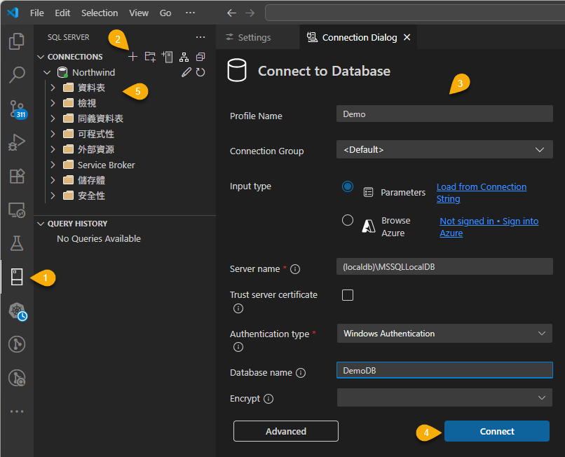 用 MSSQL LocalDB 跑 Northwind 北風資料庫當對象進行實際操演。
