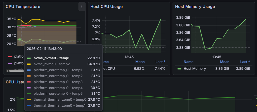 本次軍購的主要目標是想取代服役七年的 N3150,讓新時代兵器扛下家用伺服器角色。N3150 其實狀況還相當好,去年九月由 CentOS 升級 Debian 12 後,原本卡在 OS 過舊無法跑某些軟體的陰影一掃而空,我甚至還怒玩一波 24 小時網路品質監控、系統監控全家桶跟網路資安事件即時通報,不敢說能再戰十年,跑個三五年應沒啥問題。