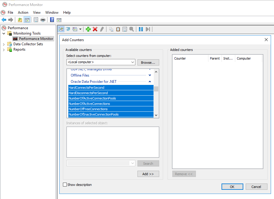 註冊完成,在效能監視器便會多出 "ODP.NET, Managed" 項目可選: