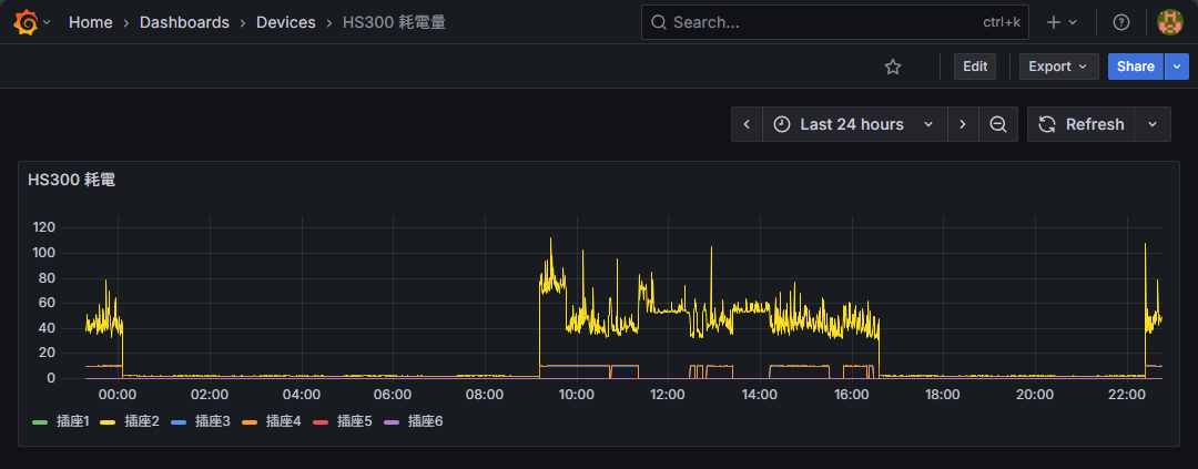因此我打算研究一下,怎麼把智慧插座用電量餵給 Prometheus,用 Grafana 看圖表,如此用 SQLite 收資料跟畫圖表的土砲服務就能功成身退了。