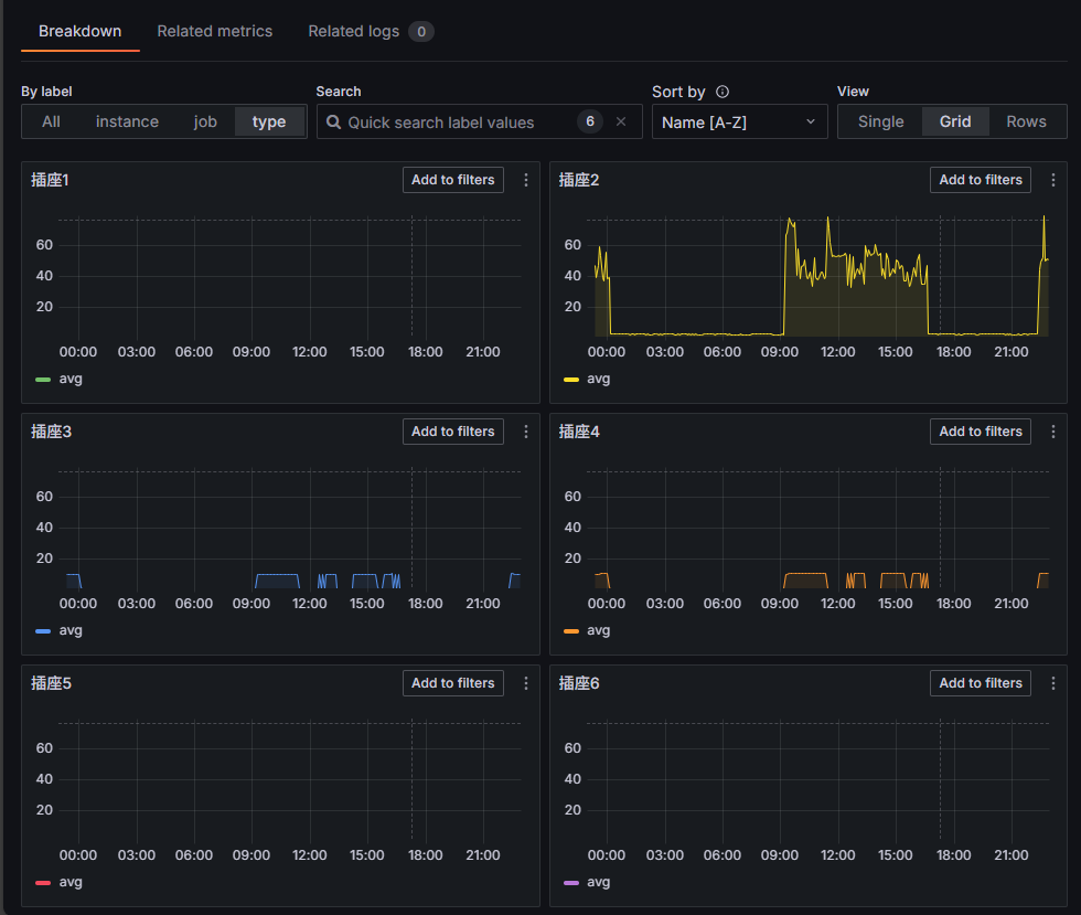 像是指定查詢區期、設定篩選條件、詳細分析檢視... 等都難不倒它,用來管插座算是大材小用,Prometheus + Grafana 不愧是當前 DevOps 監測平台的一哥。