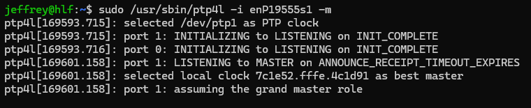 sudo /usr/sbin/ptp4l -i enP19555s1 -m