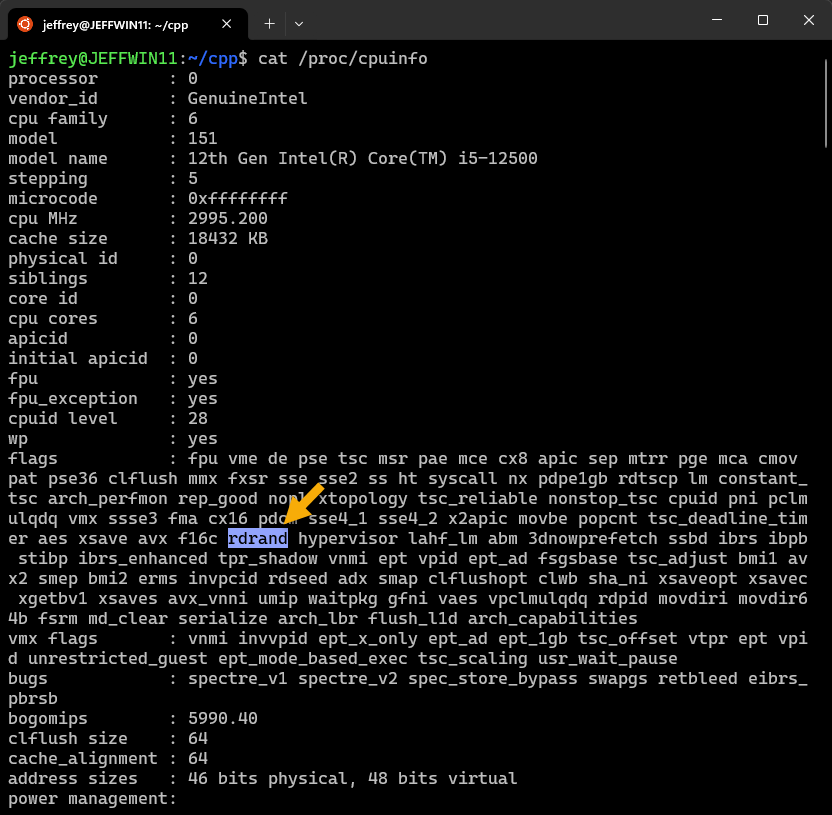 開始前可用 cat /proc/cpuinfo 觀察 CPU 是否支援 RDRAND: