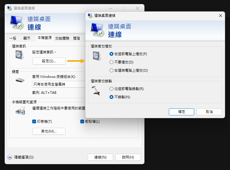 to chuaning,建議檢查 RDP 客戶端設定,先用錄音程式測試(記得檢查輸入裝置是否選對)