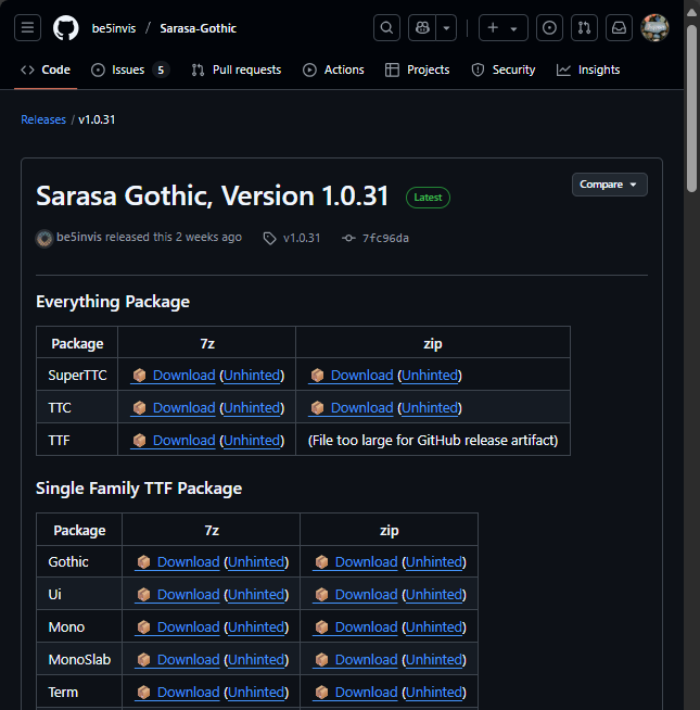 Sarasa Gothic 的下載網頁有超多下載包,多到讓人選擇困難症發作: