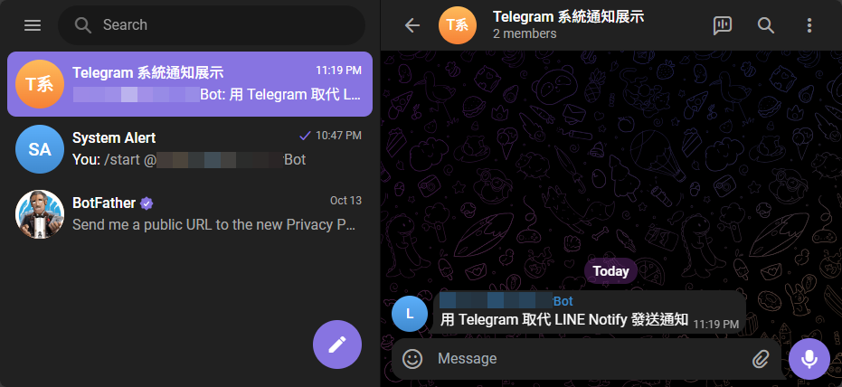 好用又免費的 LINE Notify 服務熄燈後,我一直在找可以用手機接收系統通知的替代品,先前玩過 Slack、Discord,這回再試試 Telegram。