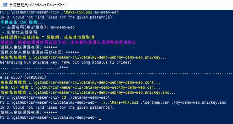 Cert:\LocalMachine\My代表本機的憑證儲存區,可當成資料夾存取 - PowerShell 7 有不少改進,像是 Get-PfxCertificate 增加了 -Password 參數,但為了考量在 PS 5.1 也能跑,只好借用 System.Security.Cryptography.X509Certificates.X509Certificate2 解決讀取 .pfx 需要輸入密碼的問題