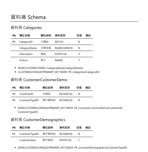 就是要 Markdown - SQL Schema 匯出 Markdown 表格轉 PDF