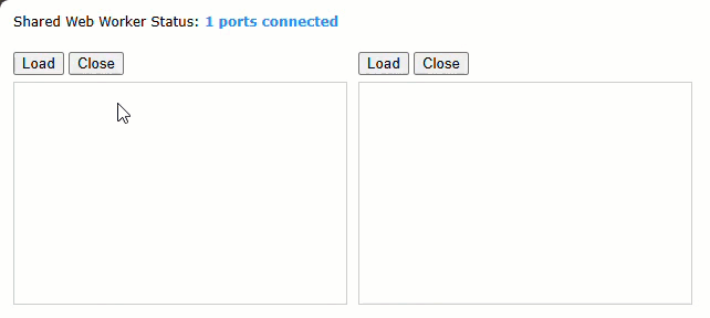 Web Worker 也支援多網頁共用,如此可實現狀態資料或資源的共享,做法是用 new SharedWorker(<js-path>) 建立 Shared Worker,而 Shared Worker 要實作 onconnect() 事件,用 port 來管理對不同來源的連線。我寫了一個簡單的聊天室當範例: