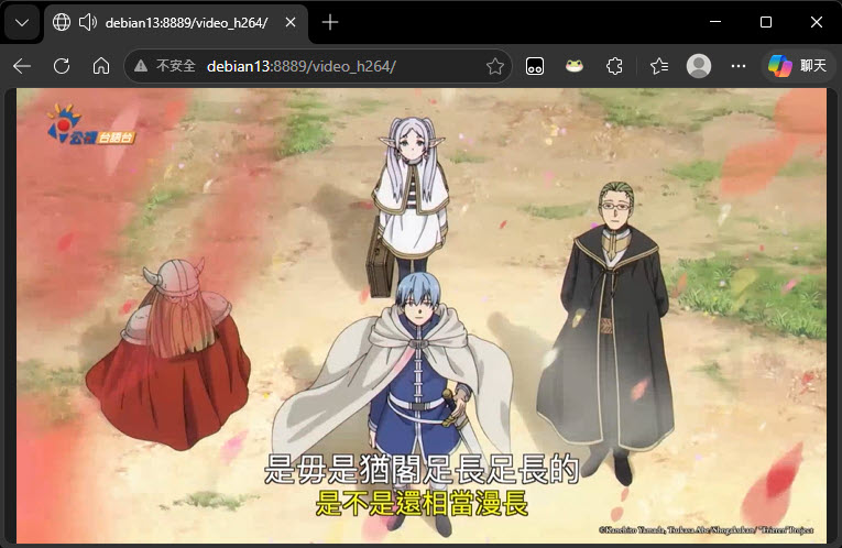 啟動容器後,用瀏覽器開啟 http://<server-ip>:8889/video_h264 即可看到影片內容: