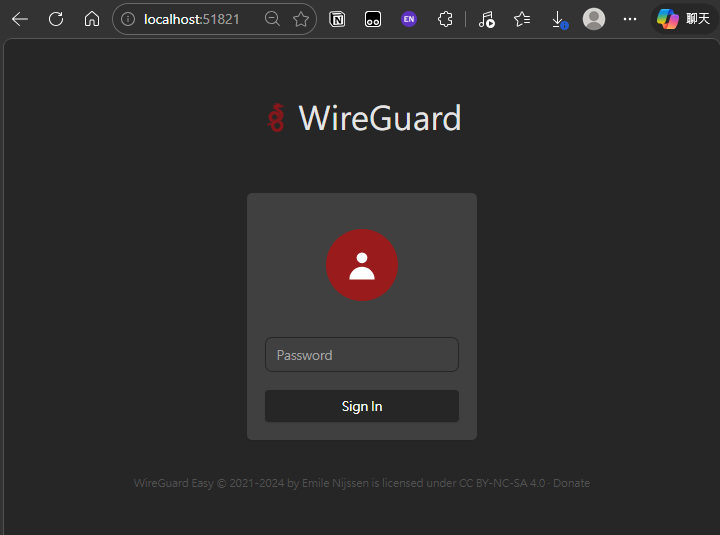 設好後,docker compose up -d 執行容器,瀏覽器連上 51821 Port 可進入管理介面: