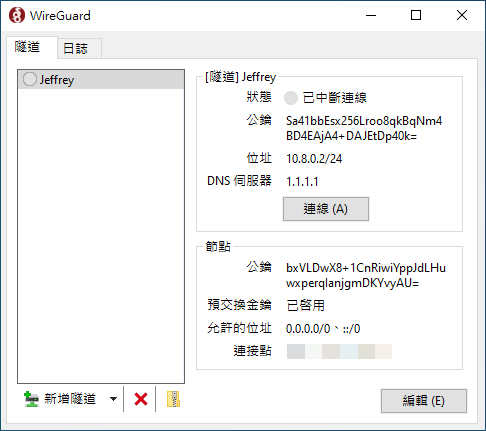 - 若裝置位於防火牆或 NAT 後方,會因久無活動被切斷,可設 PersistentKeepalive 25 秒
