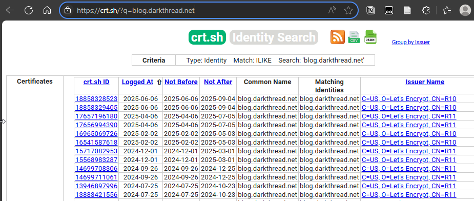 https://crt.sh 網頁介面主要開放以名查詢,但它也提供 PostgreSQL 查詢,讓惡意攻擊者有機會海撈新域名進行騷擾或刺探。